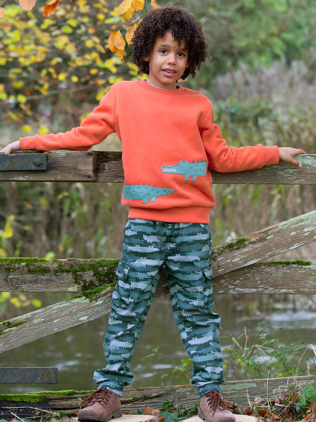 We’ve swapped camo for crocs in our clever print design for these fab cargo pull ons! Featuring multiple pockets for little finds, these hardwearing yet soft trousers are built for action and crafted with every detail in mind.