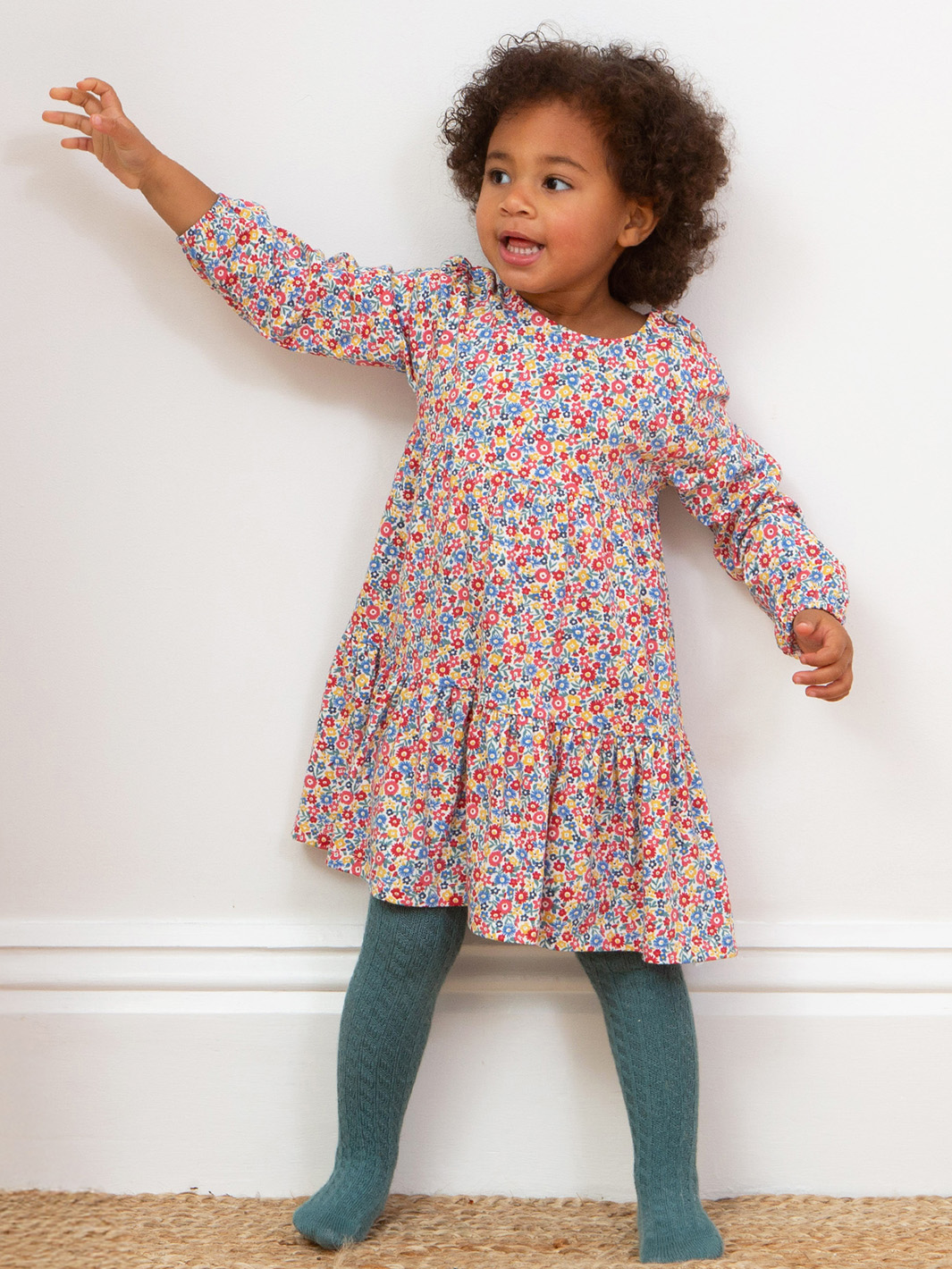 Spin away in this fab dress with a tiered, full skirt. Our Ditsy tales print is inspired by the enchanting world of storytelling, filled with magical, blooming gardens and vibrant flowers! Made from our fantastic stretch jersey which delivers comfort and durability.