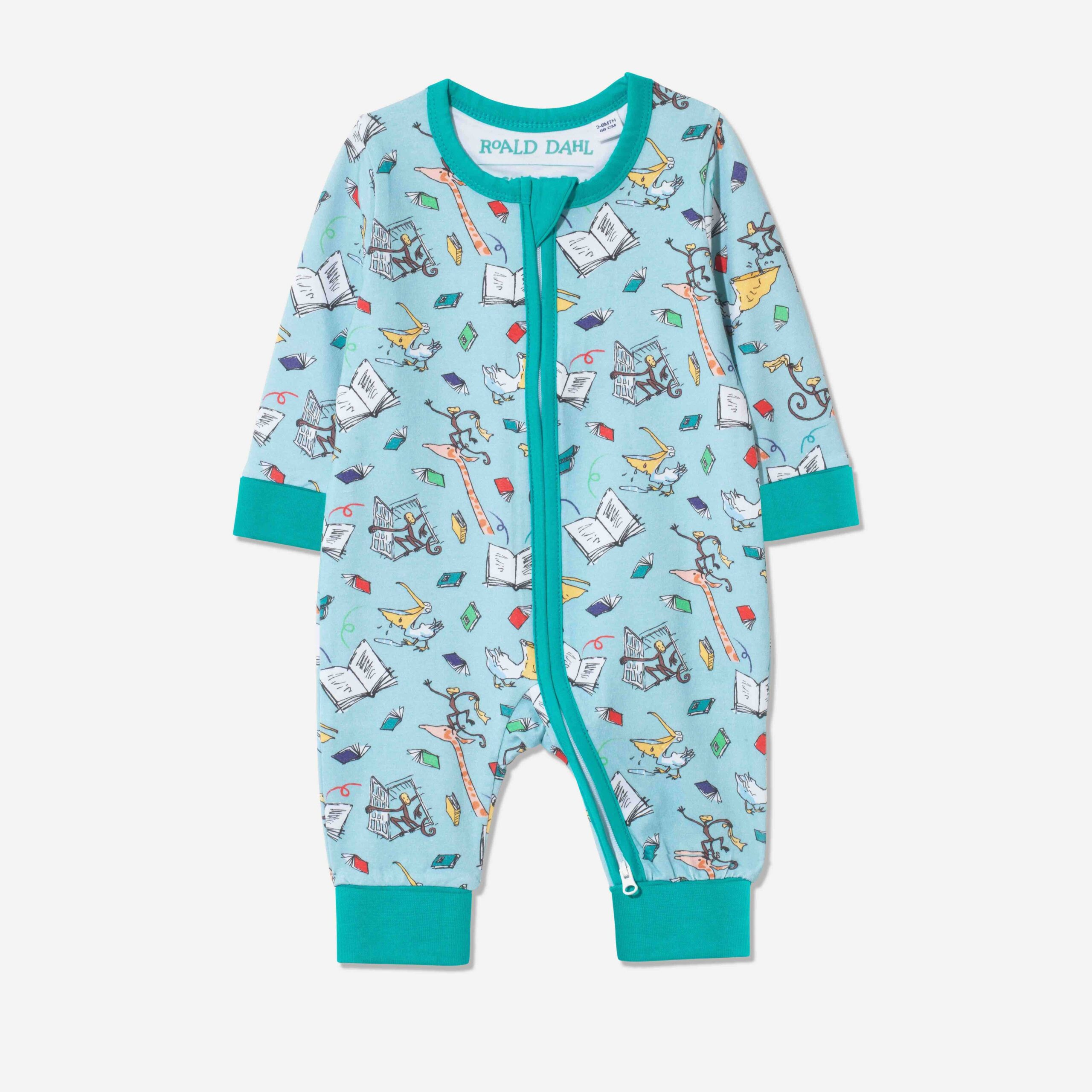 Part of the Roald Dahl x Ducky Zebra collection, the sleepsuit is a unique baby gift or newborn present for story lovers.