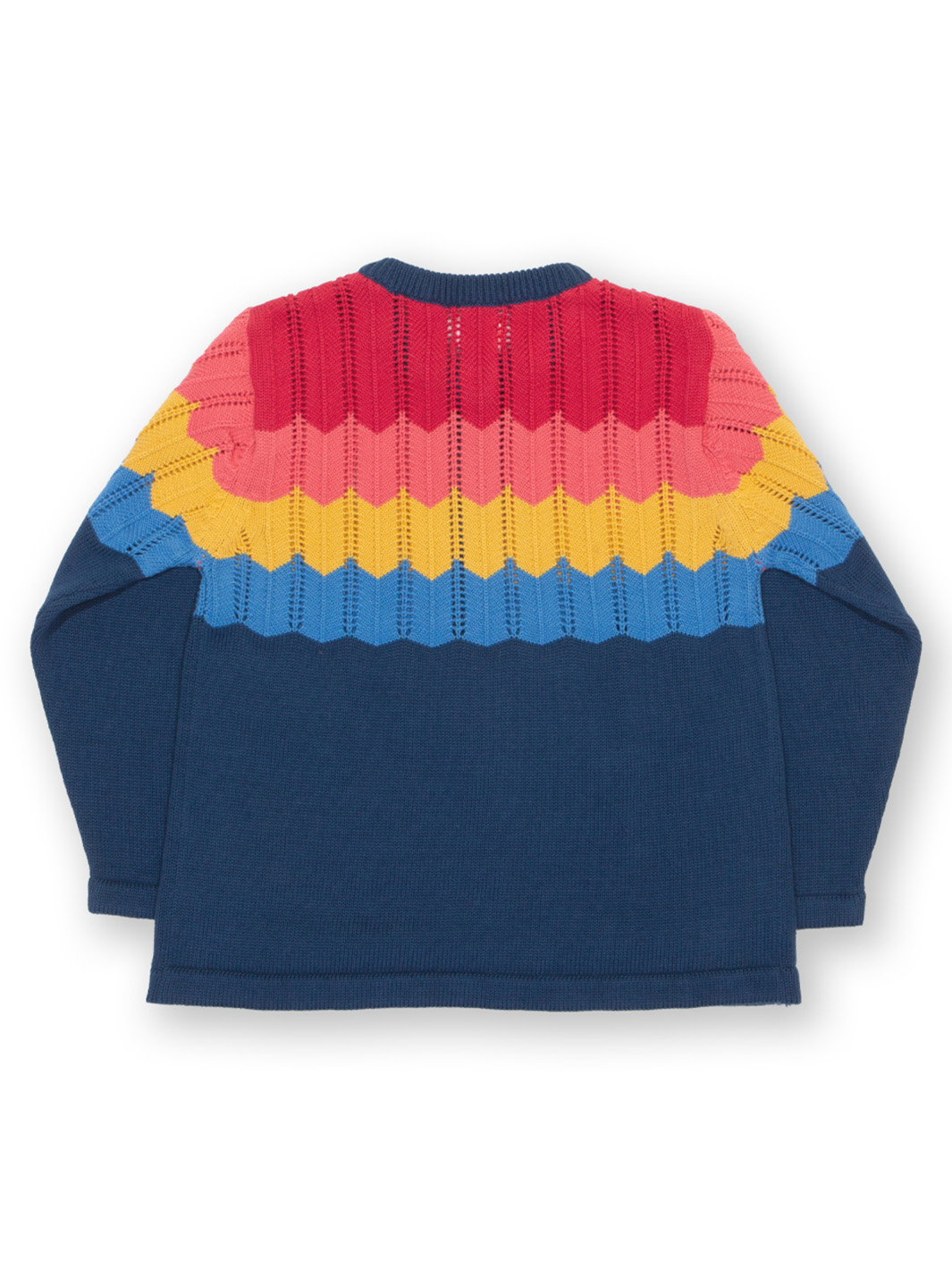 All the colours! We absolutely adore this colour popping cardi and know it will become a favourite layer this season. Featuring a stunning chevron knit in rainbow and navy plus coconut buttons, this midweight knitwear is just the burst of brightness every outfit needs.